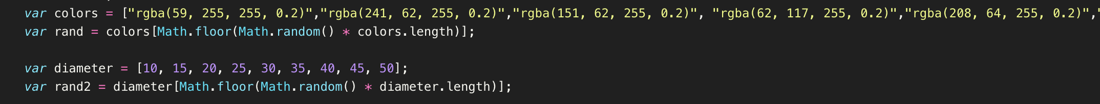 It took some experimentation with the shapes and colors until I landed in a visual that I felt satisfied with. The way that I decided to handle different users is, I created two different arrays, one for the colors (which I previously defined in Adobe Illustrator to make sure that they compose a uniform palette and then I also created an array for different predetermined diameters for the drawings. I had to make sure that all the colors have transparency so that the effect in the screensaver will be better.